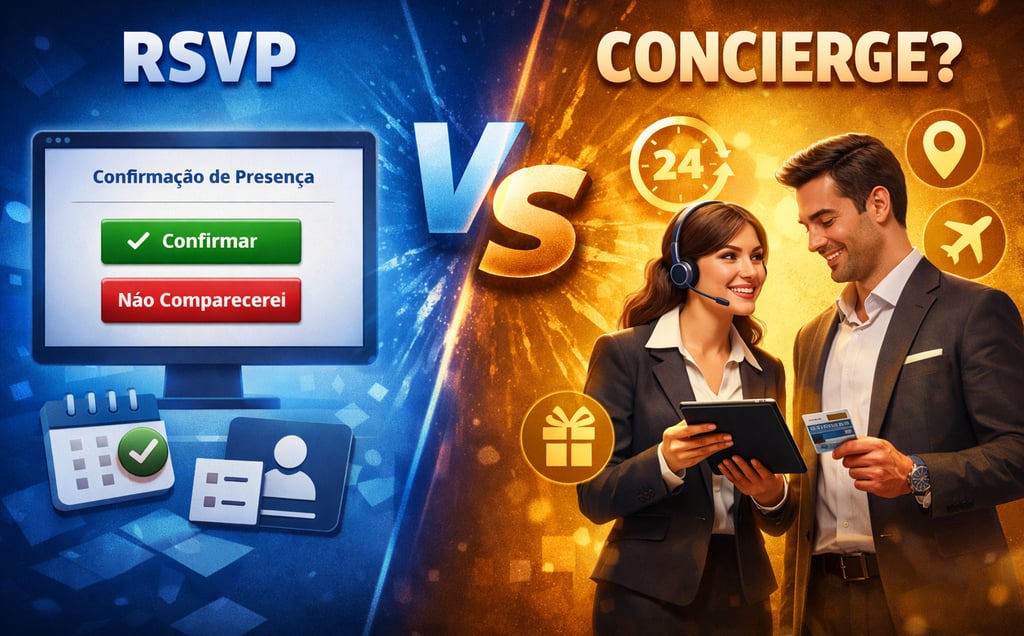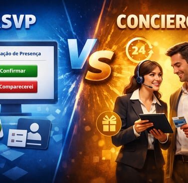 RSVP é a confirmação de presença do convidado — ele recebe o convite, acessa a página e informa se participará. O objetivo é organizar a lista, prever o público e planejar a operação do evento. Concierge vai além: é um atendimento personalizado que acompanha o convidado antes, durante e depois do evento, oferecendo suporte, informações, lembretes e uma experiência mais próxima. RSVP organiza. Concierge encanta. Saiba mais...