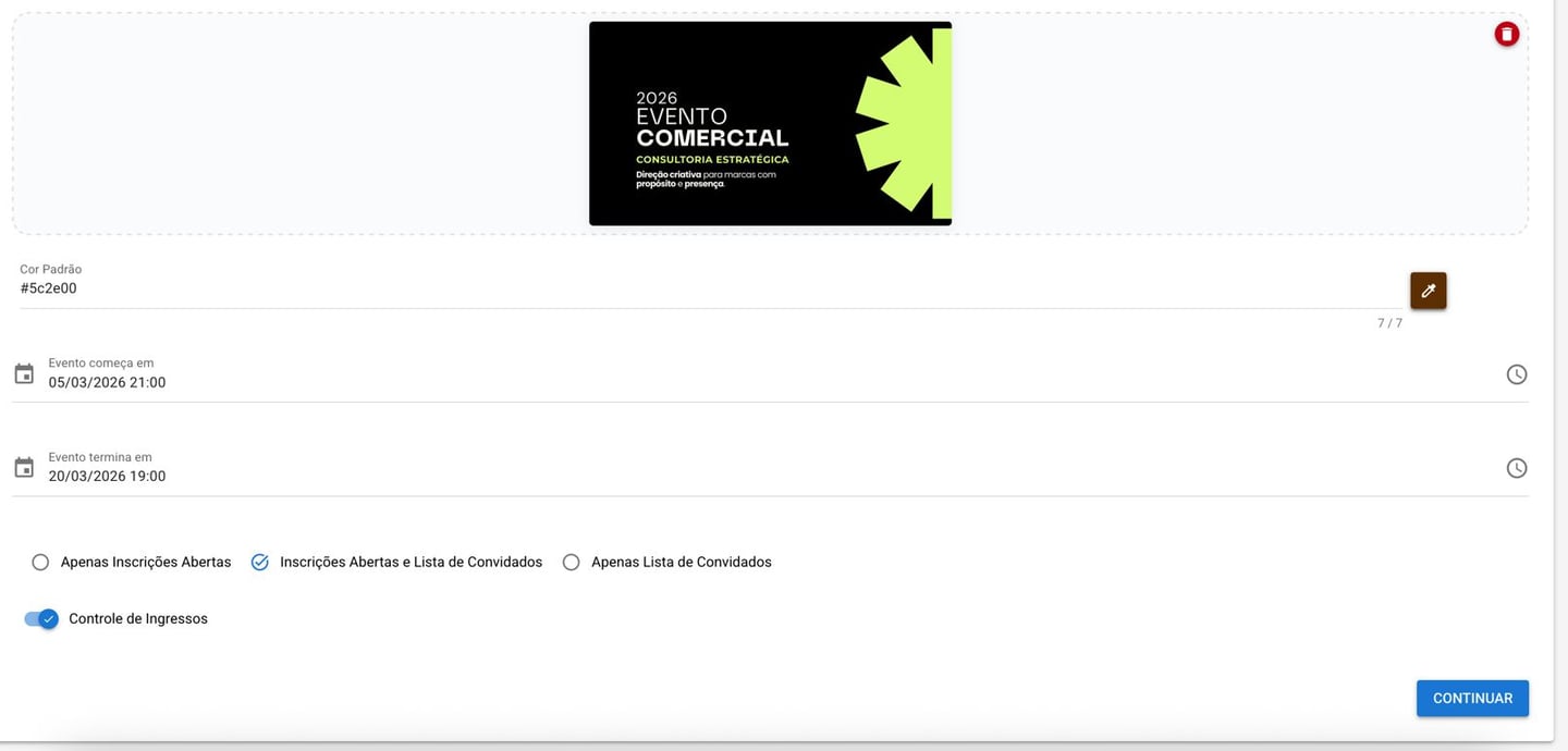 Crie uma landing page profissional para seu evento em poucos minutos. Basta preencher as informações, adicionar as imagens, configure seu email e WhatsApp de disparo, fazer o upload da lista de convidados e publicar. Em instantes, seu evento estará no ar, com convites enviados automaticamente e pronto para receber as confirmações de presença.
