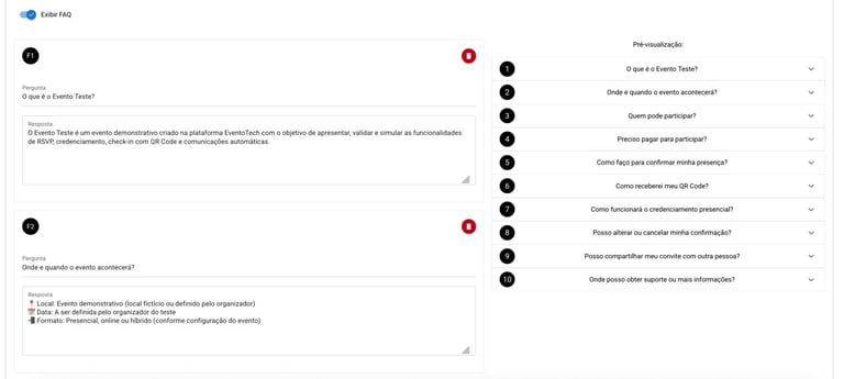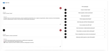 Crie e organize as perguntas frequentes para orientar seus convidados.