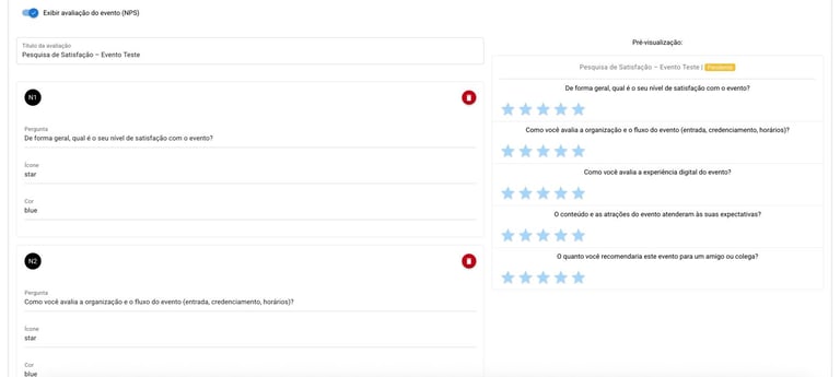 Para finalizar, crie a pesquisa de NPS do evento e defina o dia e o horário em que ela será enviada.